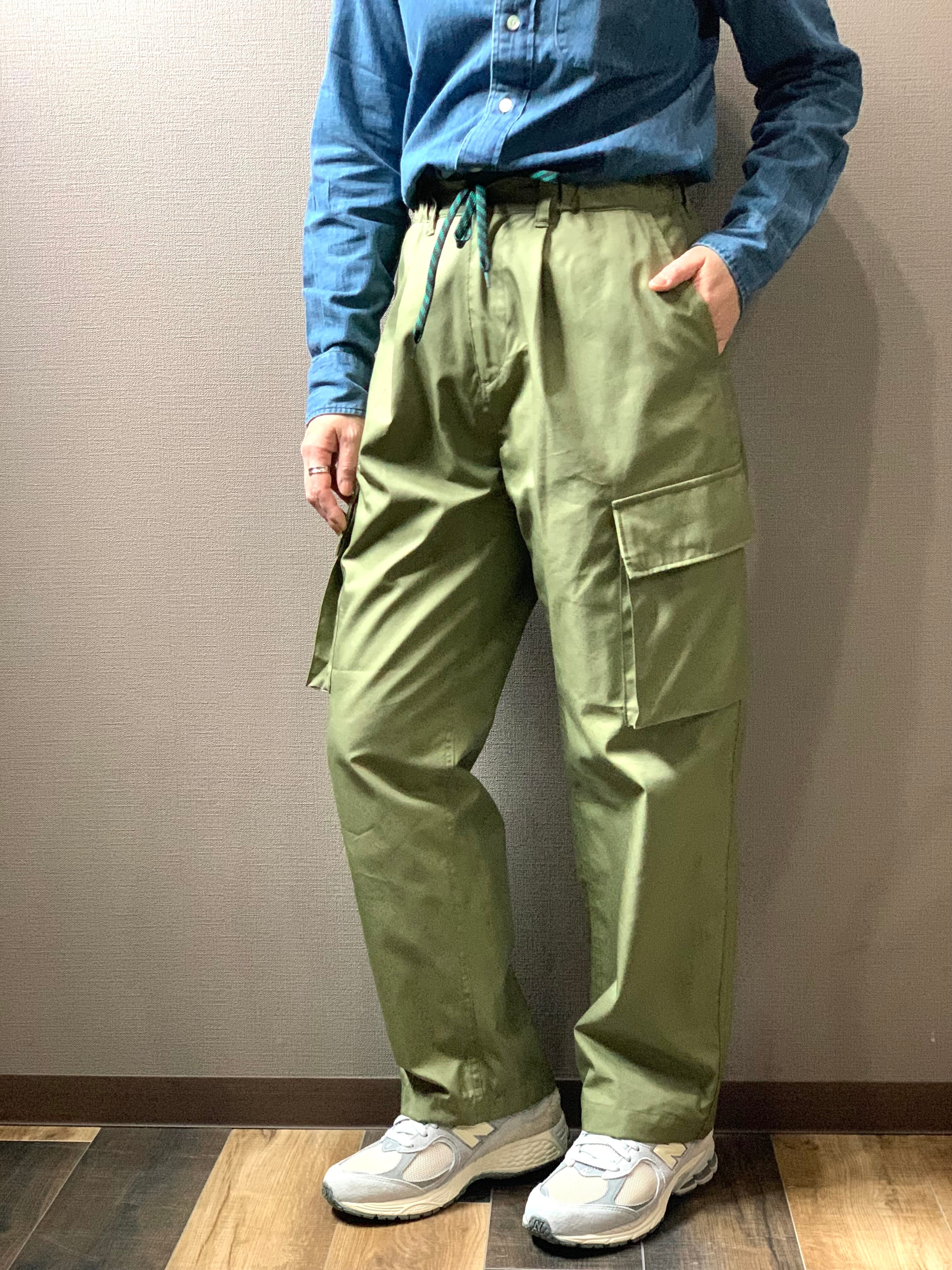 セミイージー仕様のカーゴパンツで、ウエストはゴムが入り、ややゆとりを持たせたデザイン。