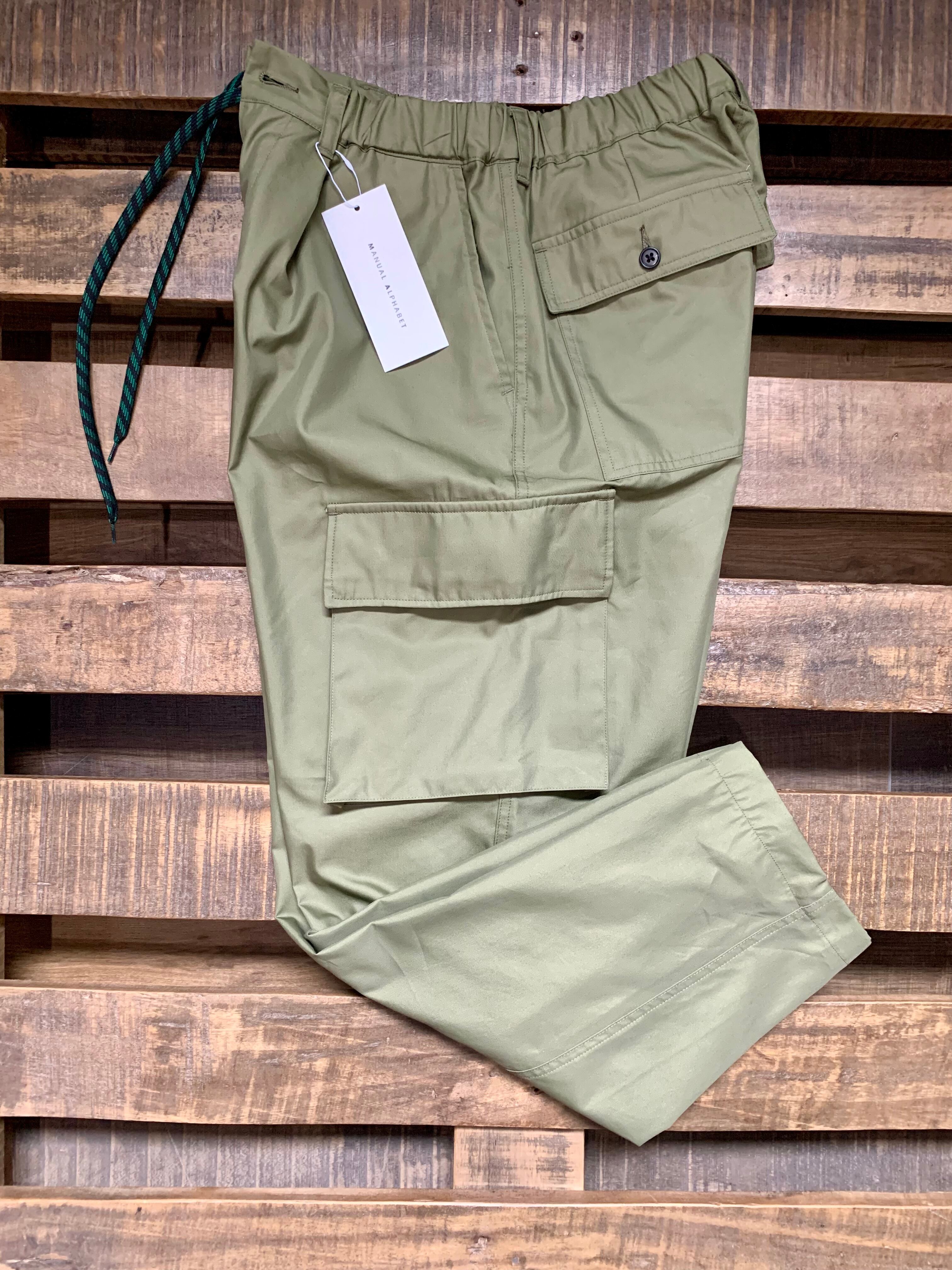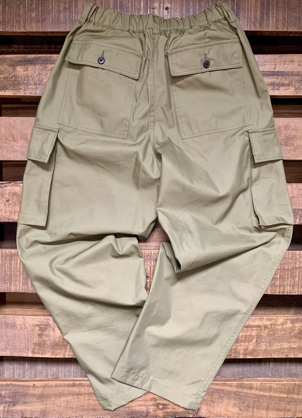 MANUAL ALPHABETから光沢あるカーゴパンツ、コットンナイロンのウェザークロスのカーゴパンツです。
