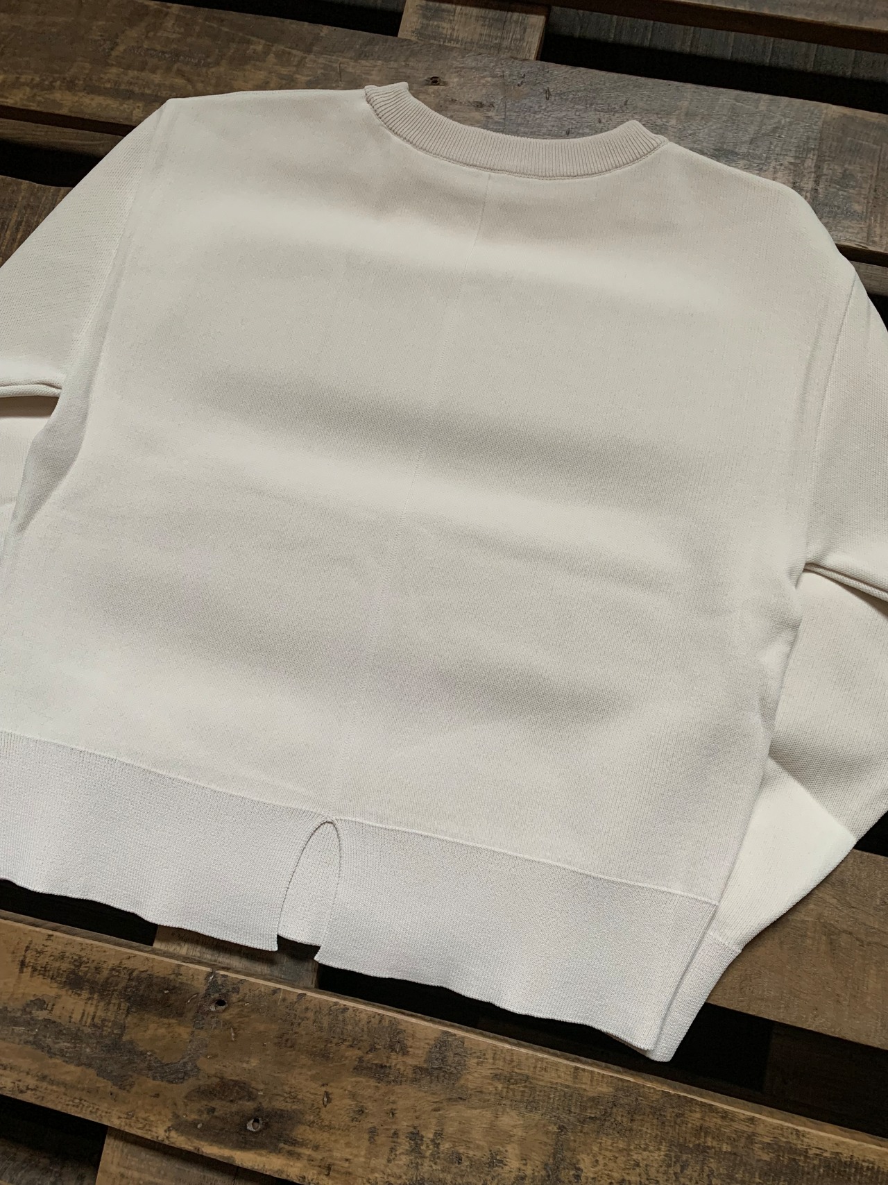 首周り・袖・裾には同素材のリブ仕様となっており、首元は空きすぎずスウェットのようなデザインで、パンツのとコーディネートにもおすすめです。