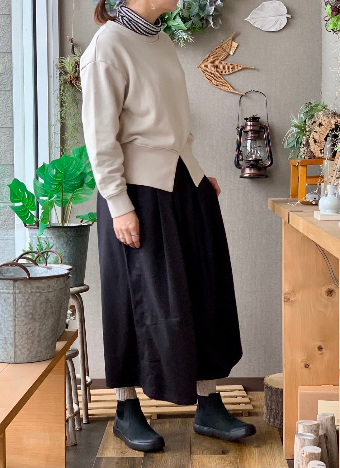 たっぷりと生地を使って、スカートのようにフレアに広がるフレアパンツです。