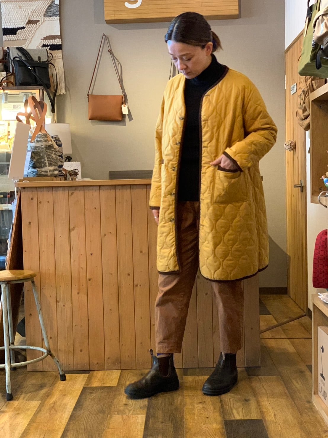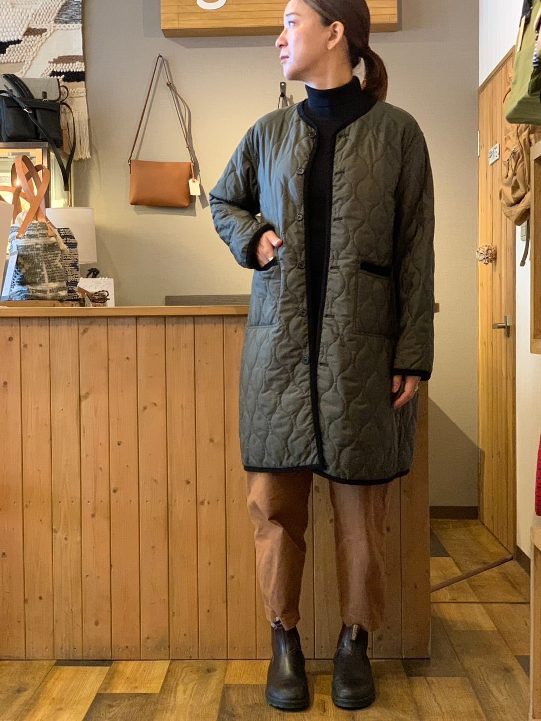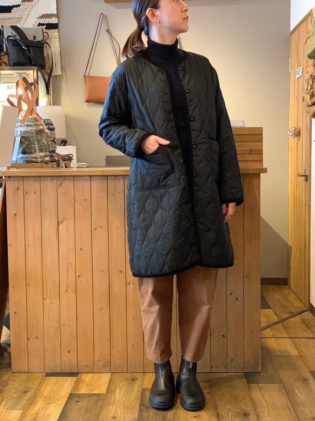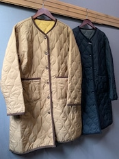 すっきりとしたシルエットで、どんなスタイリングにも合わせやすいキルティングコートです。