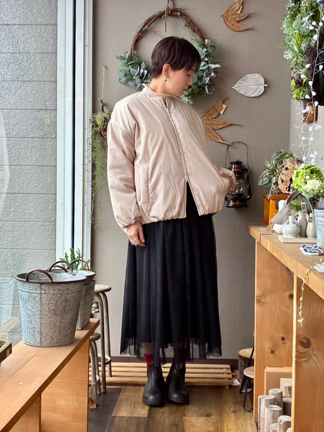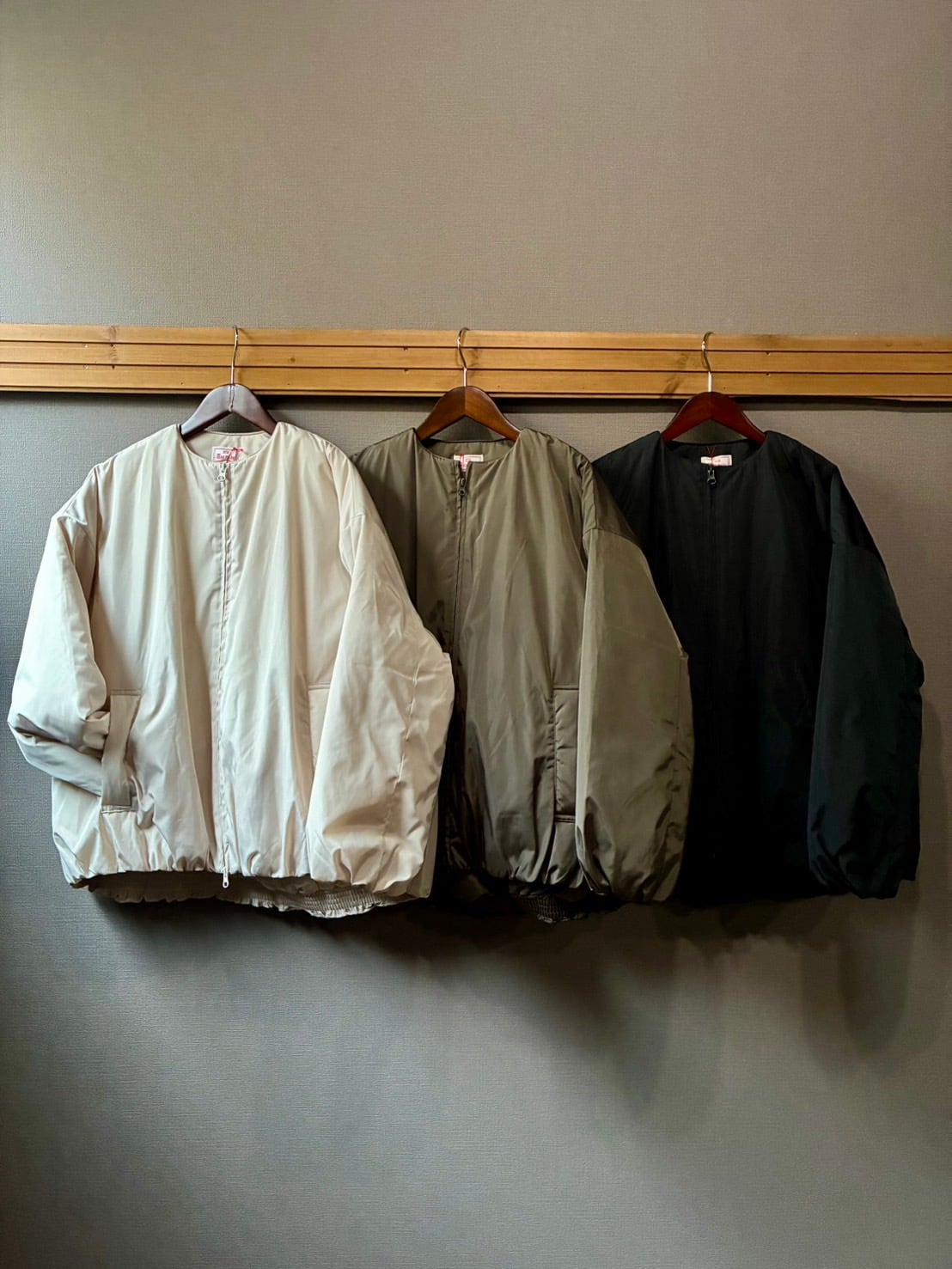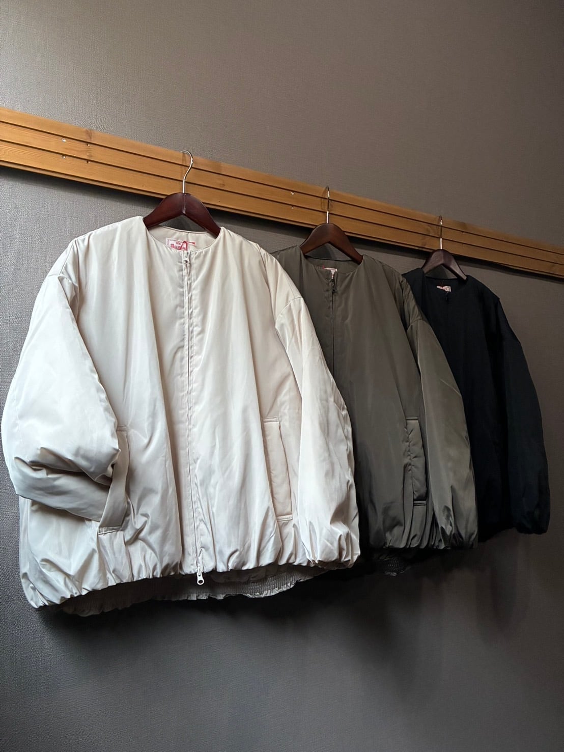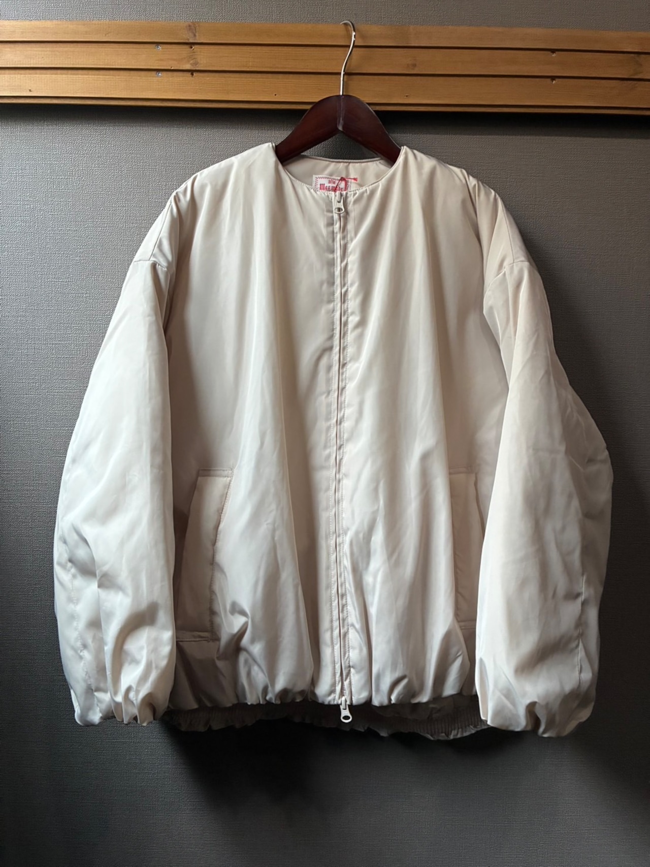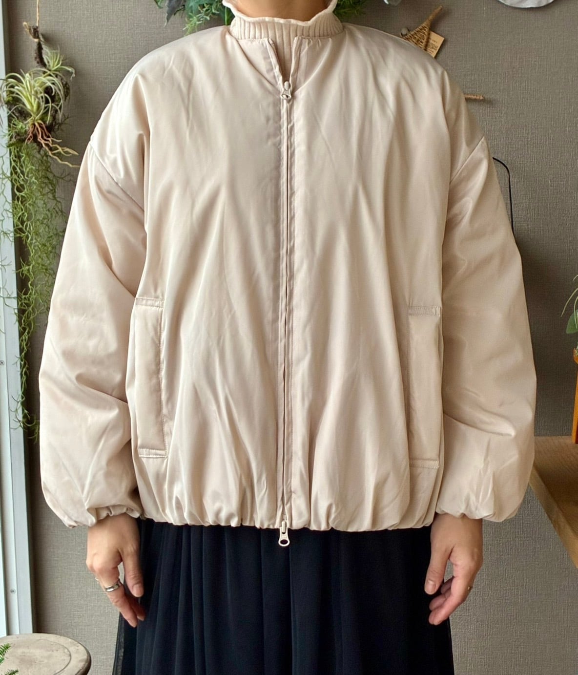 mao madeから ノーカラーバルーンシルエット中綿ブルゾンのご紹介です。