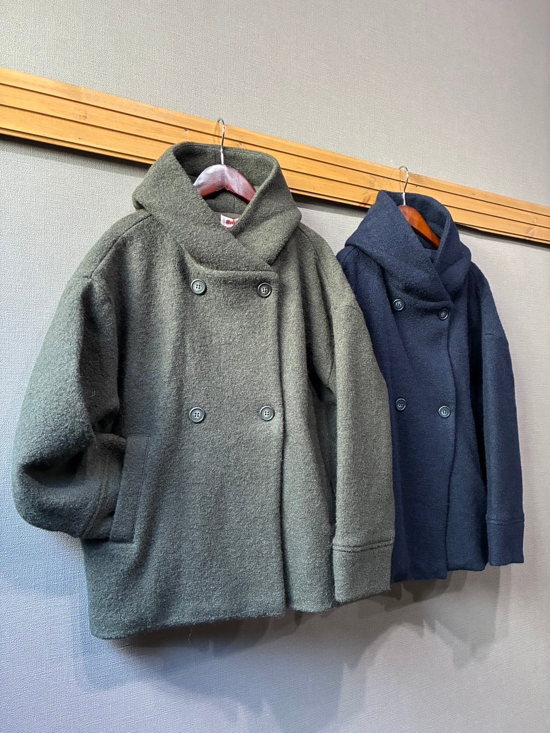 圧縮ウールシリーズ ダブルボタンミドル丈フーディジャケットが届きました。