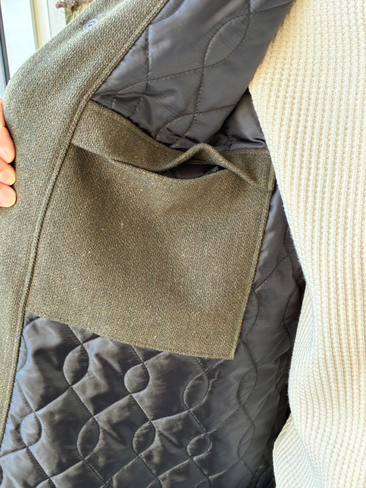 経糸のみを2重にした珍しい二重織の一種を使用した中綿アワードジャケットです。