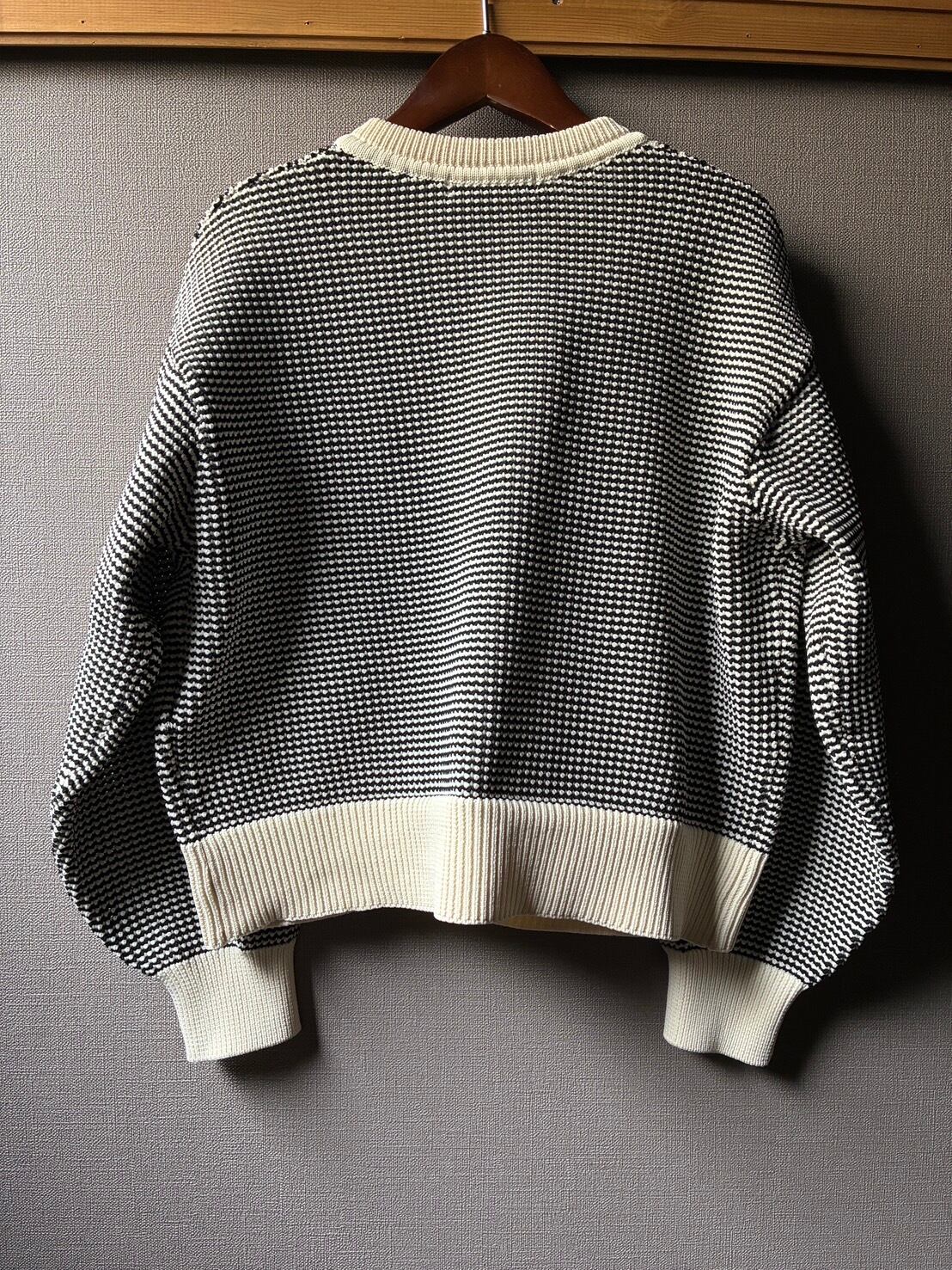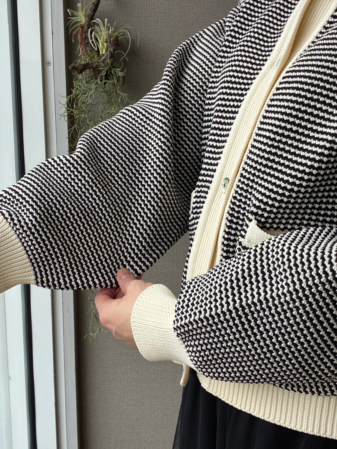 小さな起伏のある特徴的な編地はシルエットが崩れにくく気品さも兼ね備えています。
