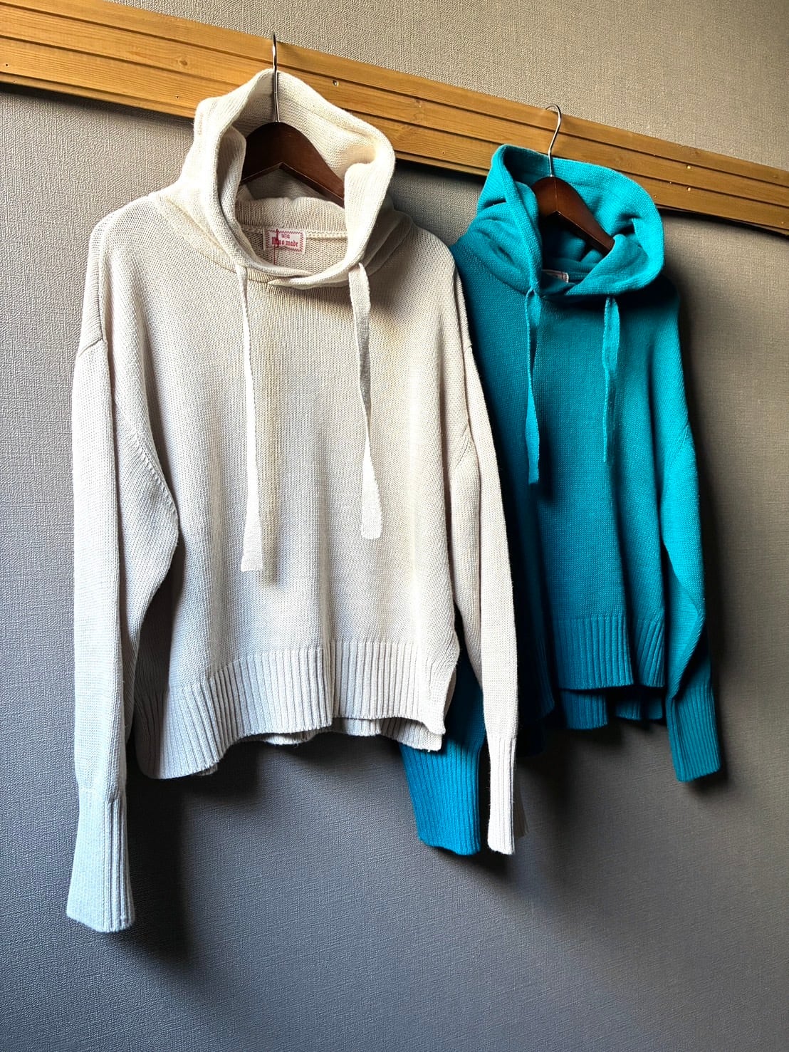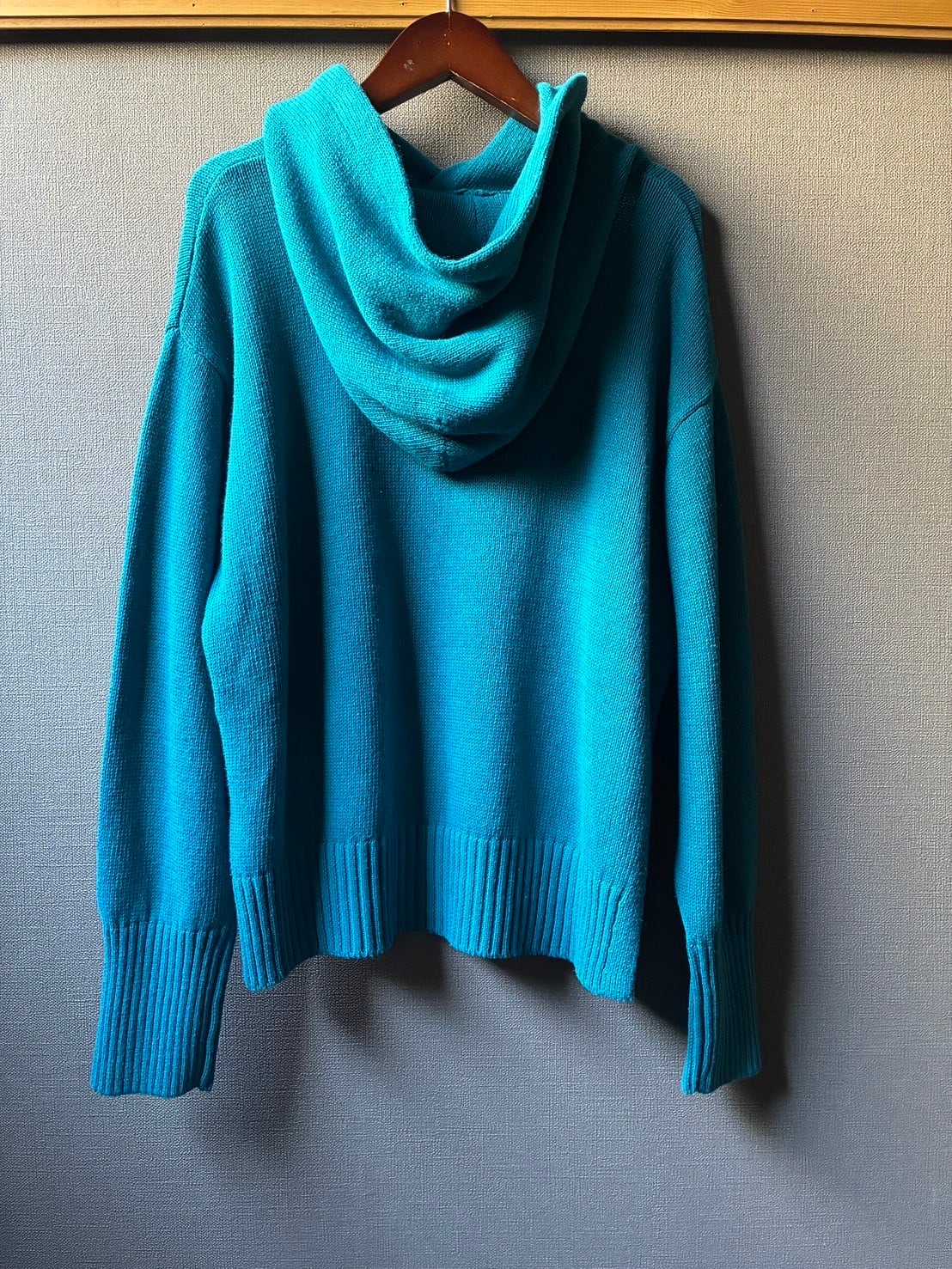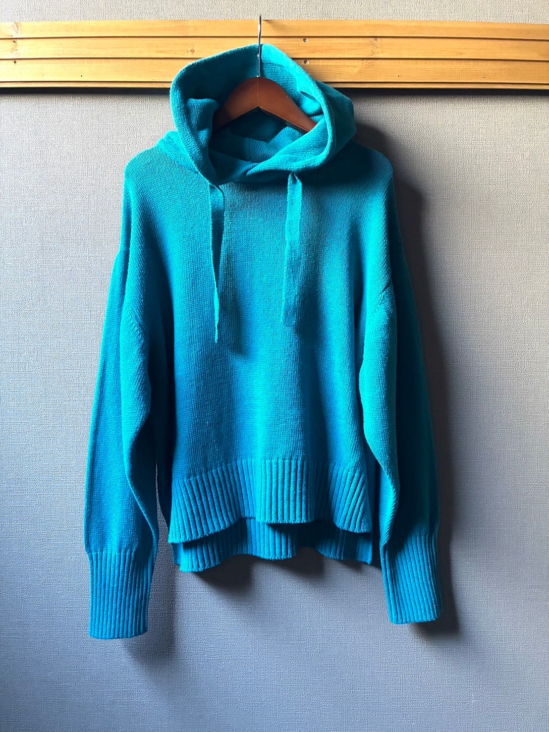 袖口の長めリブや、平たく太めのフード紐など、さりげないディテールにもこだわりが感じられます。