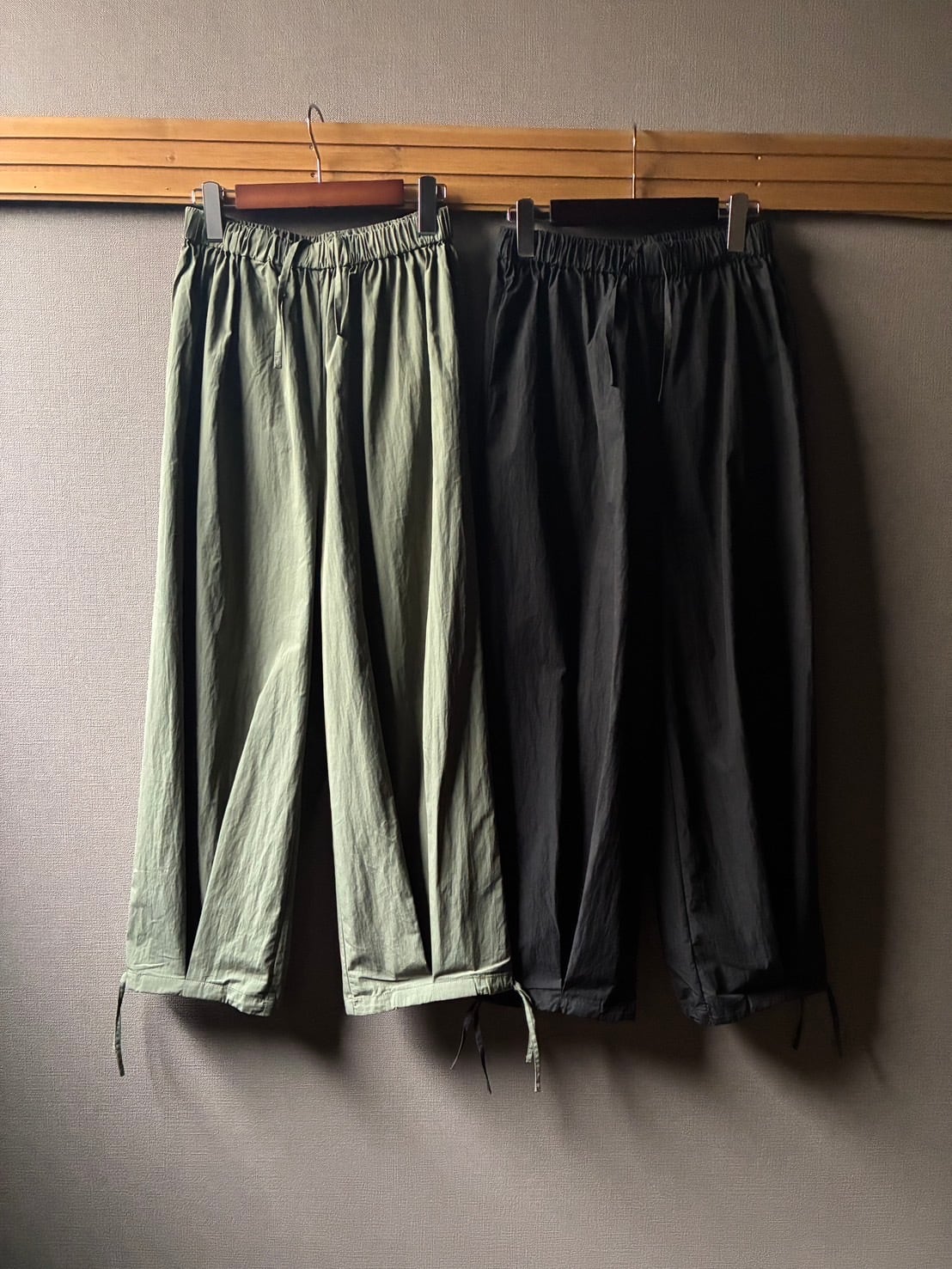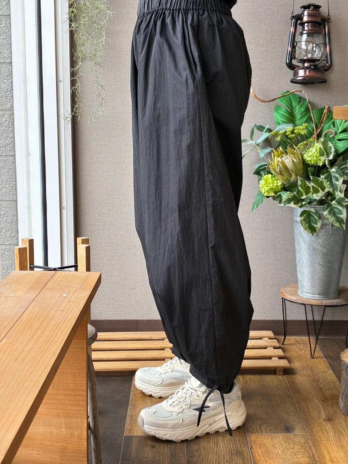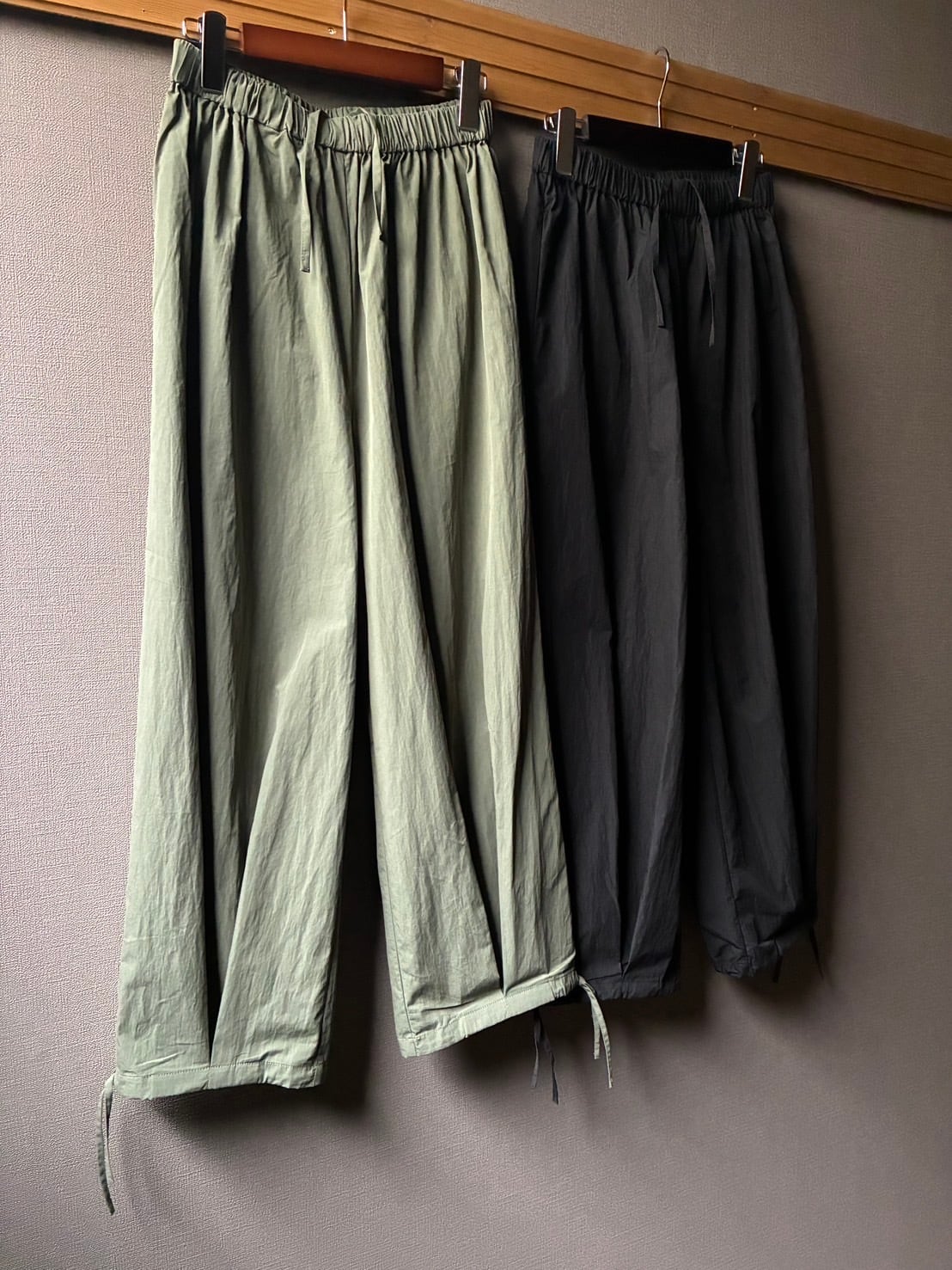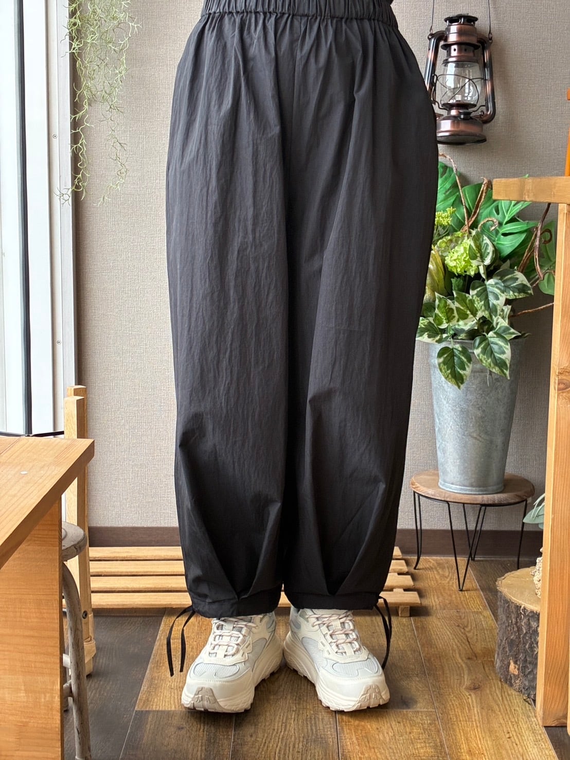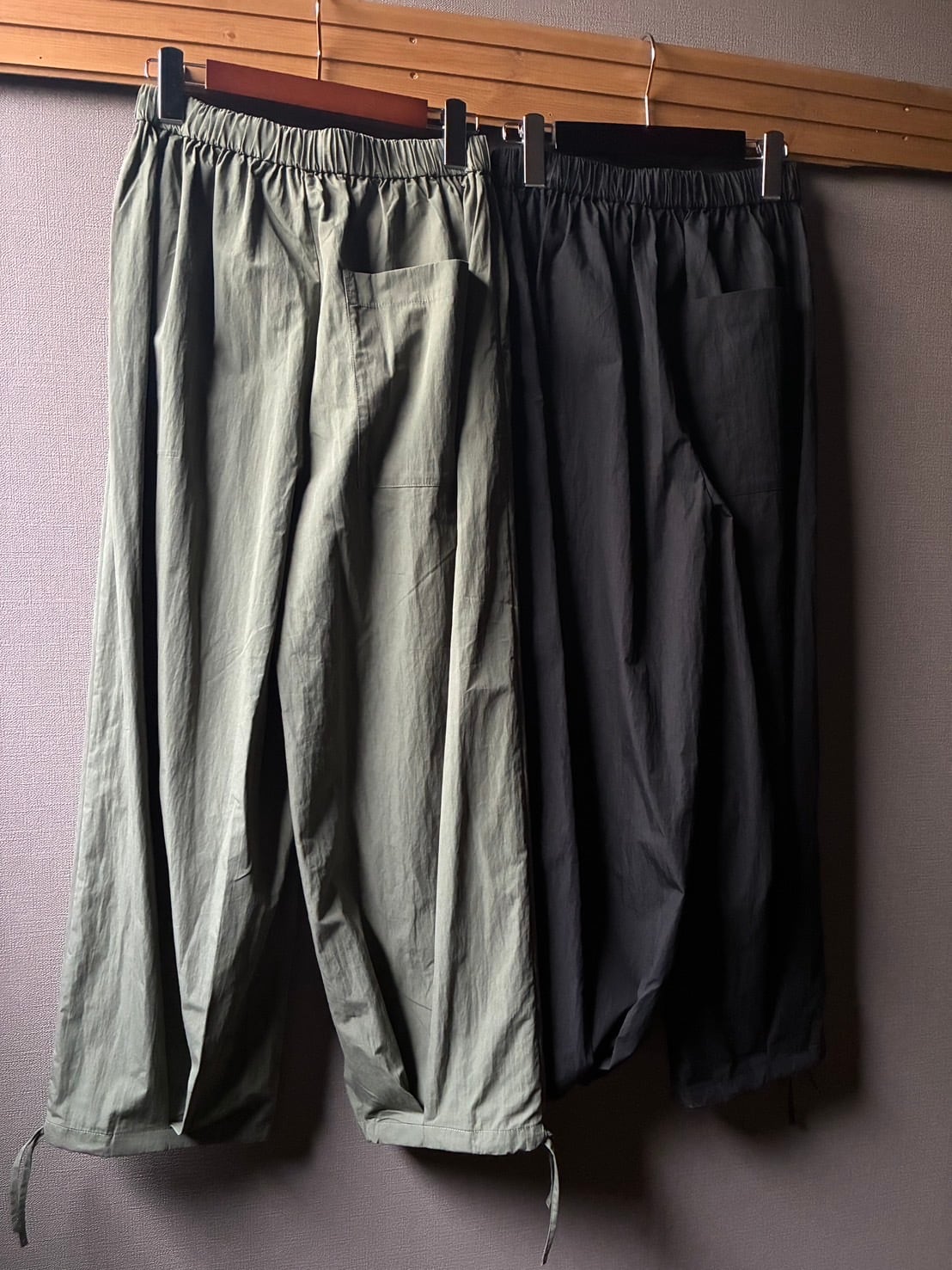 maomade からコットンナイロン生地を使用した、軽やかで立体的なフォルムが特徴のパンツのご紹介です。