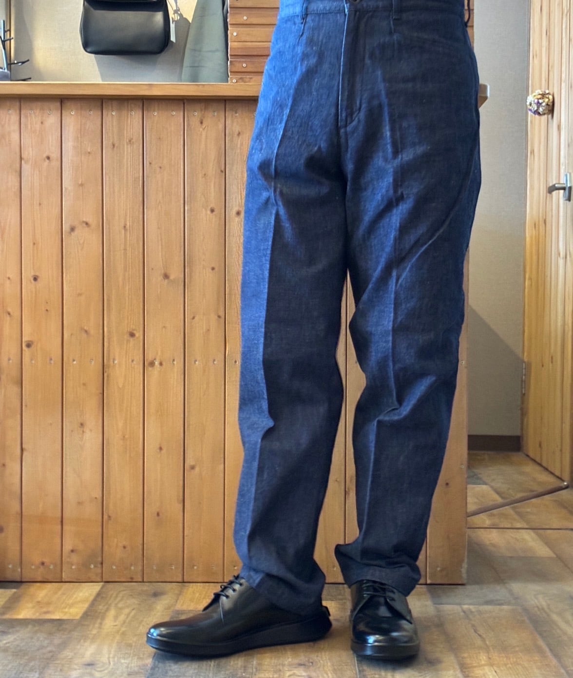 デニムを穿きたいけどカジュアルになりすぎたくないという方にもおすすめのデニムトラウザー。