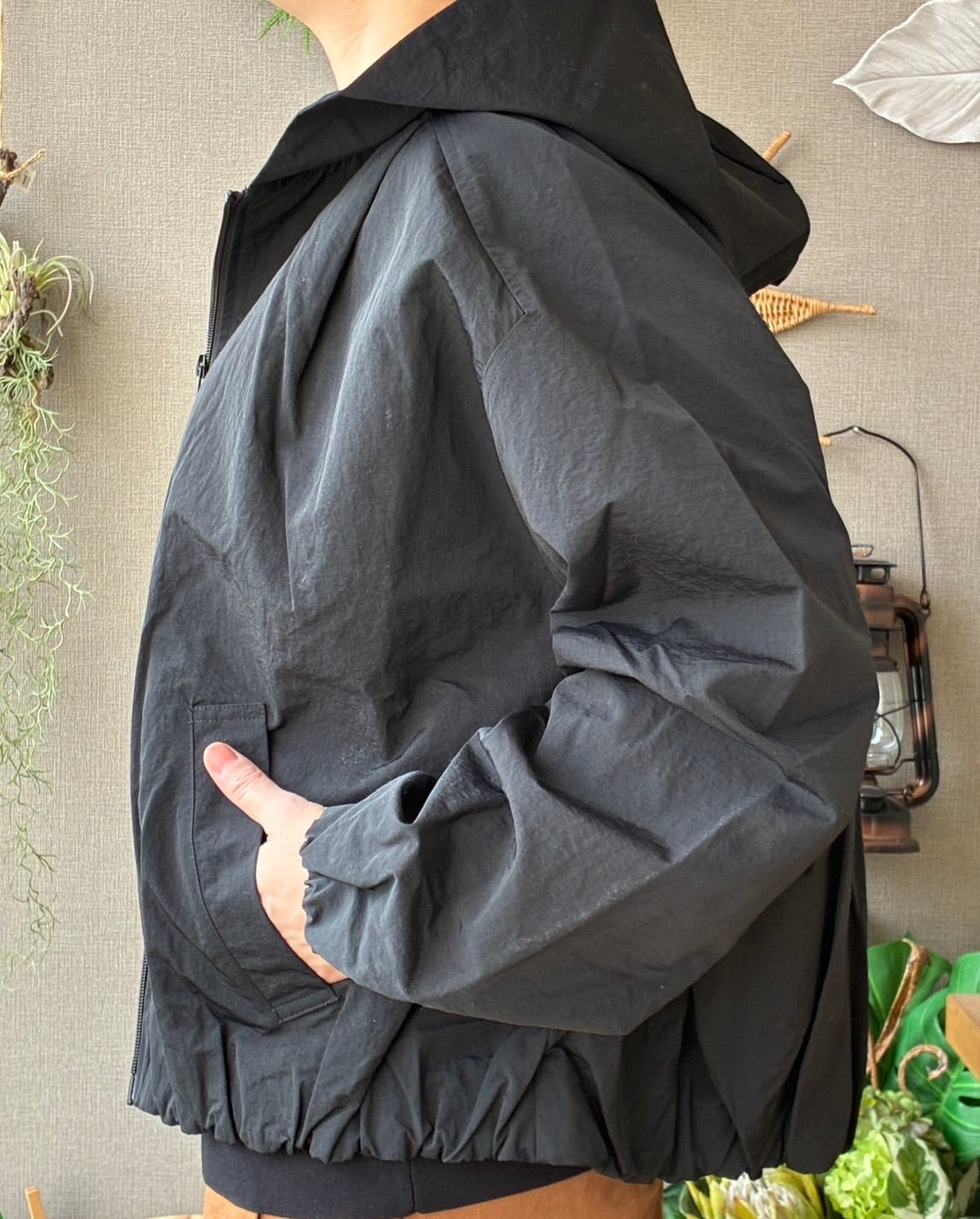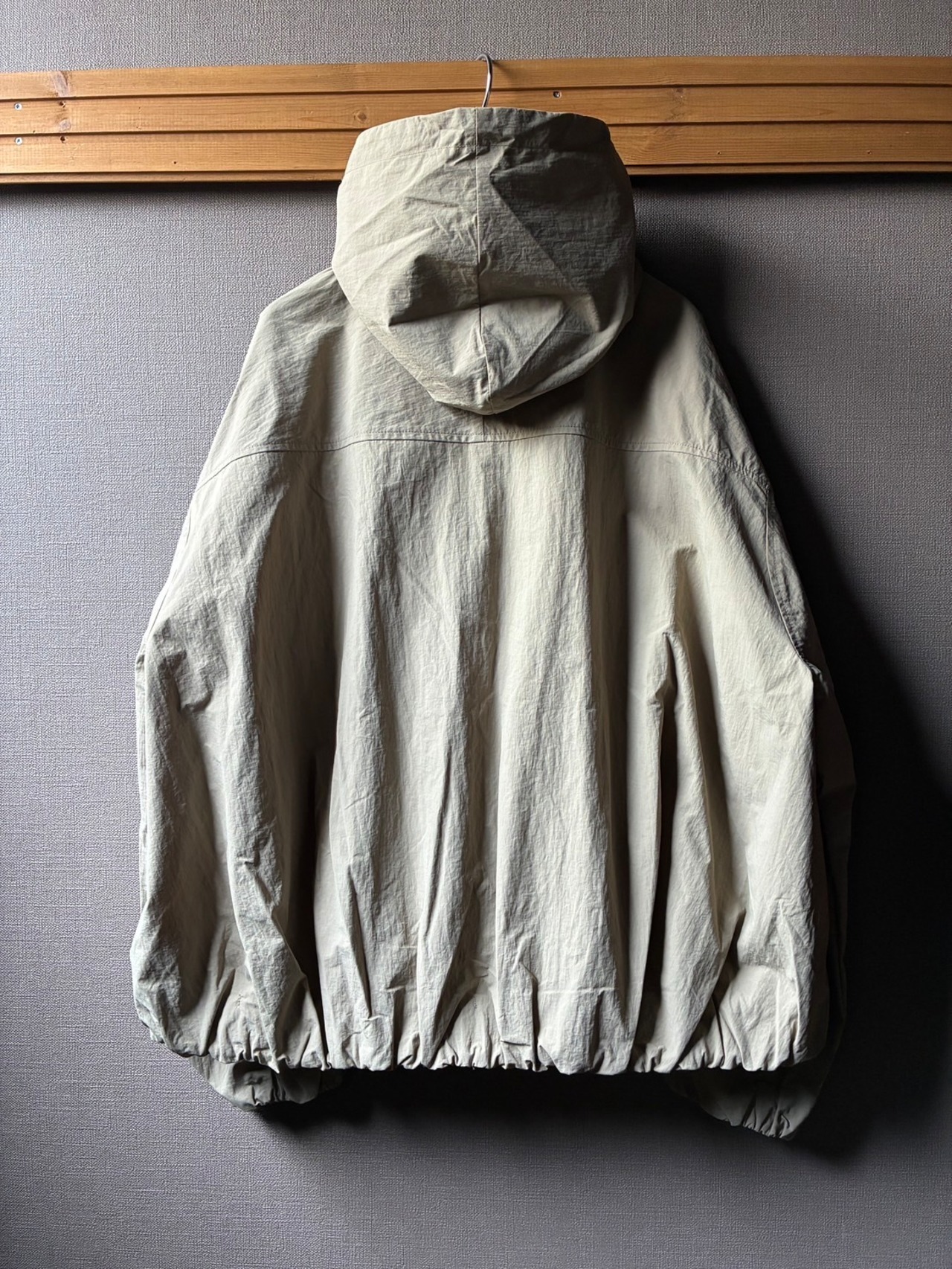 maomade マオメイド 別注ヴィンテージウェザージャケット フード付きジップアップジャケット バルーンシルエット ナイロンアウター