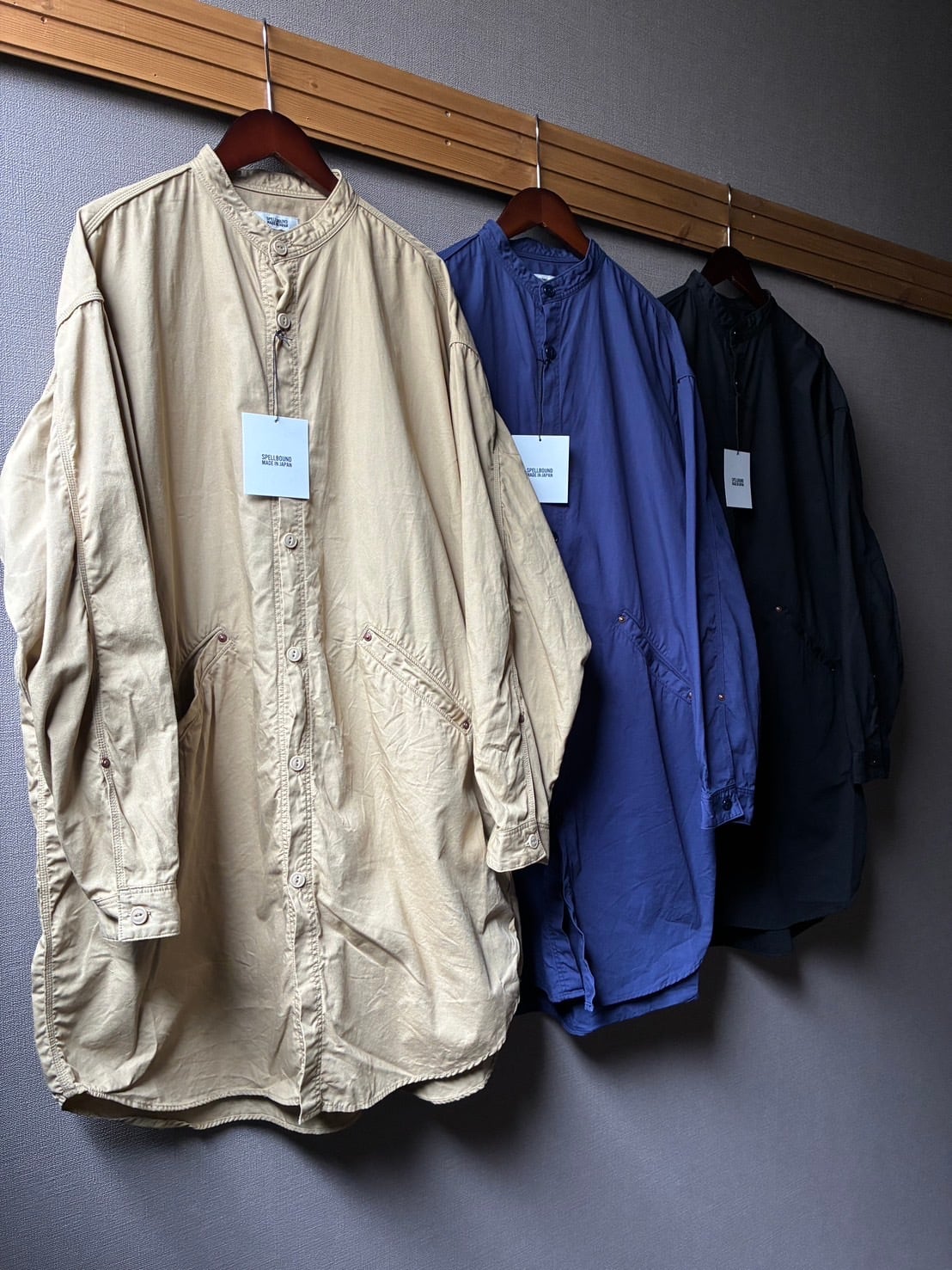 膝上丈に設定することで、シャツ・ライトアウター感覚でも活躍する一着です。