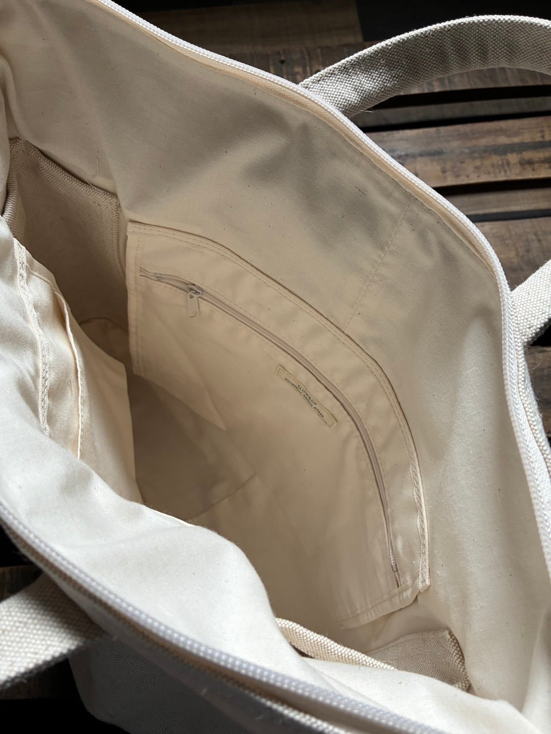 素材には岡山県倉敷市の伝統的な整織工場にて、今では希少なシャトル織機を使用して時間をかけながらしっかりと織り上げた生地を使用しています。